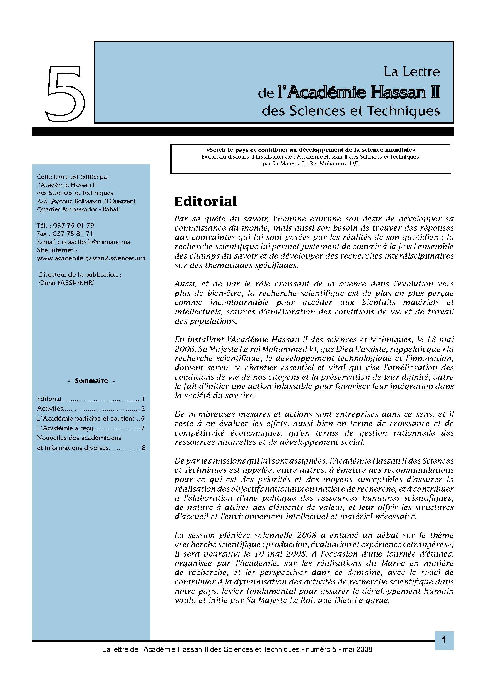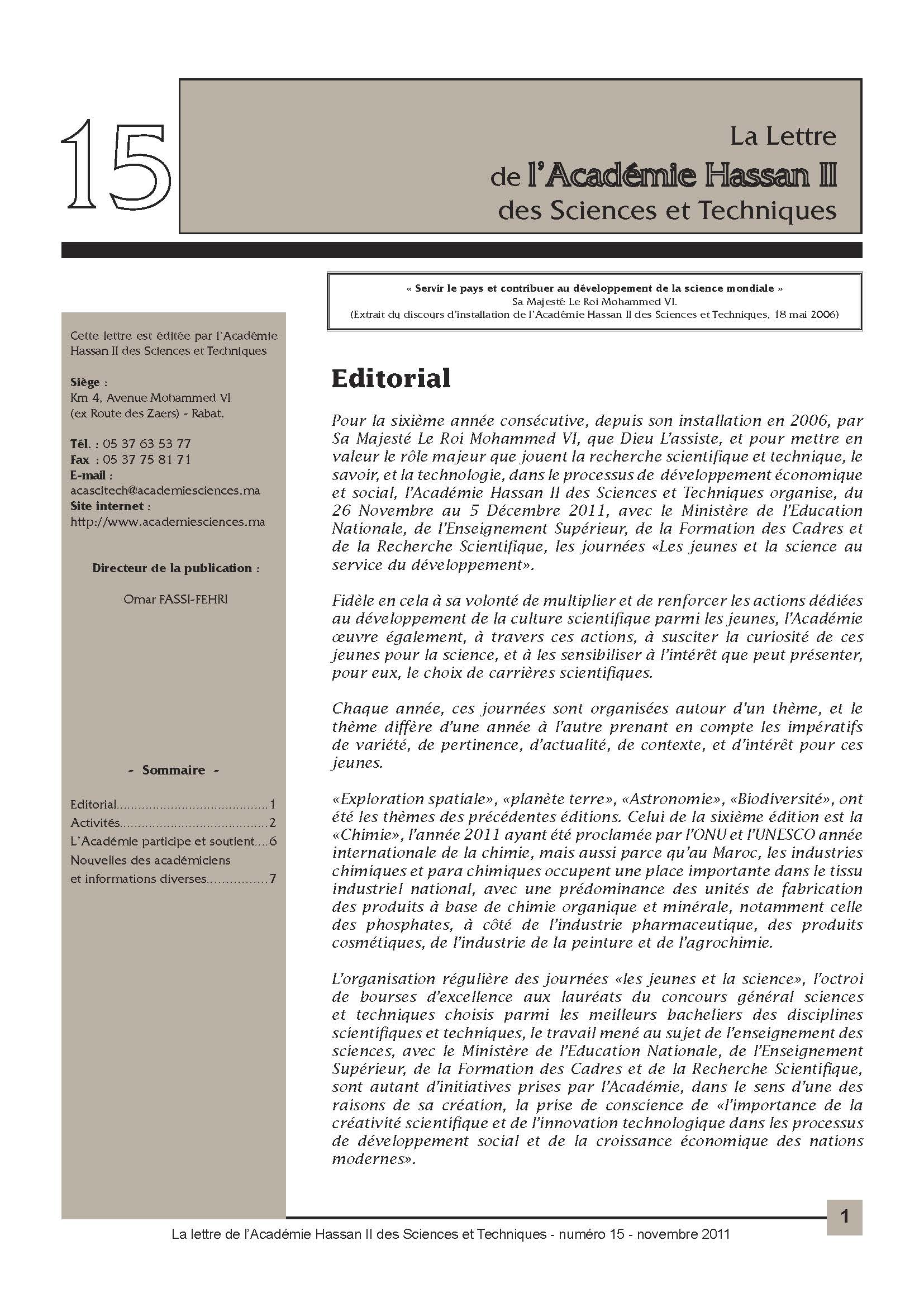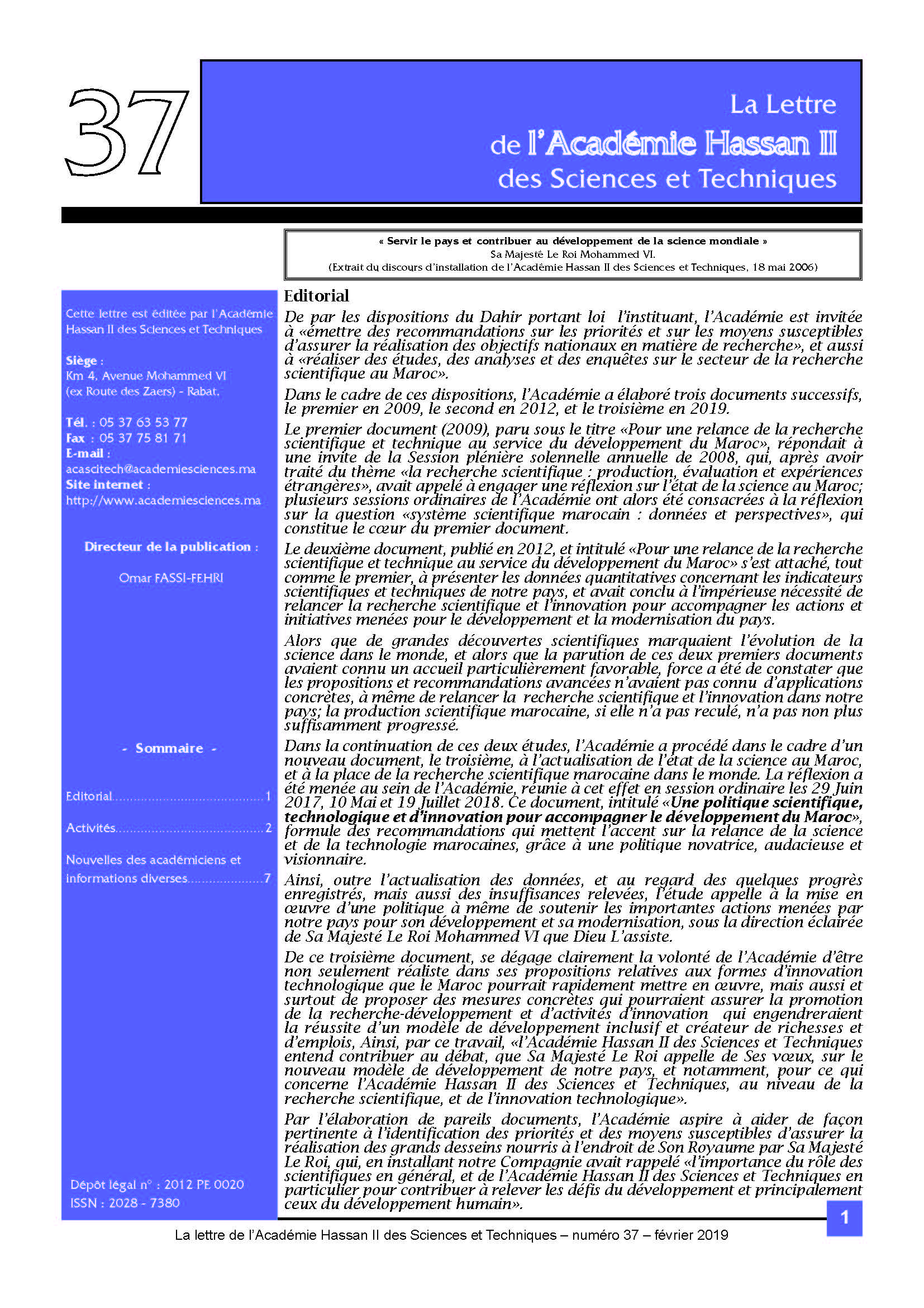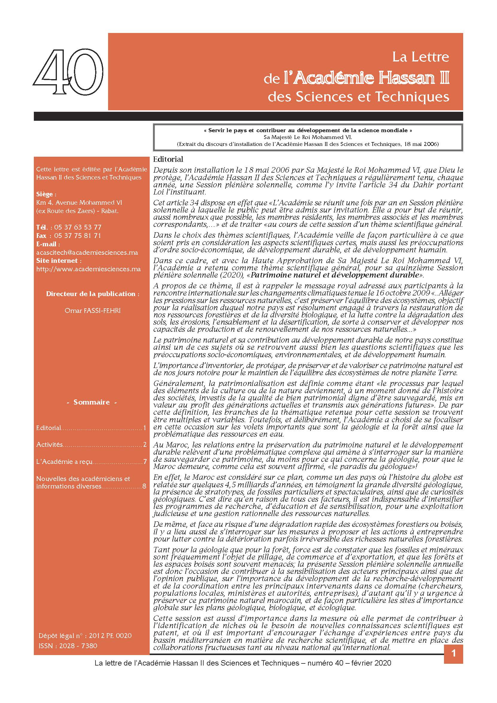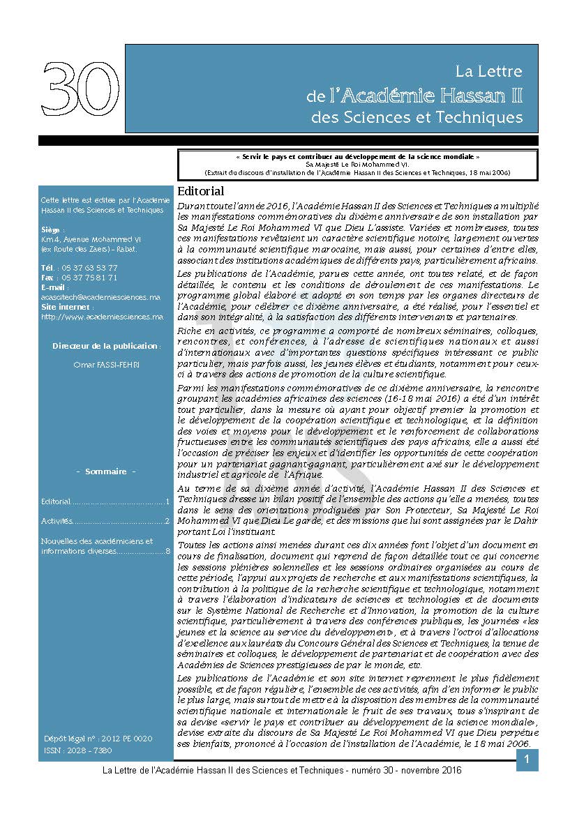 La lettre de l'Académie Hassan II des Sciences