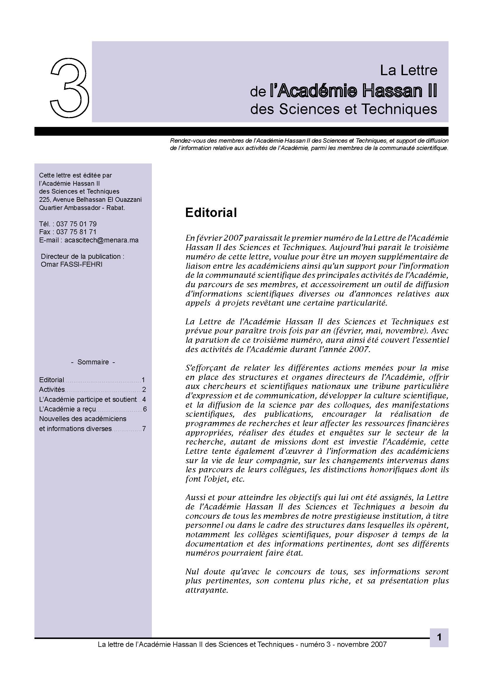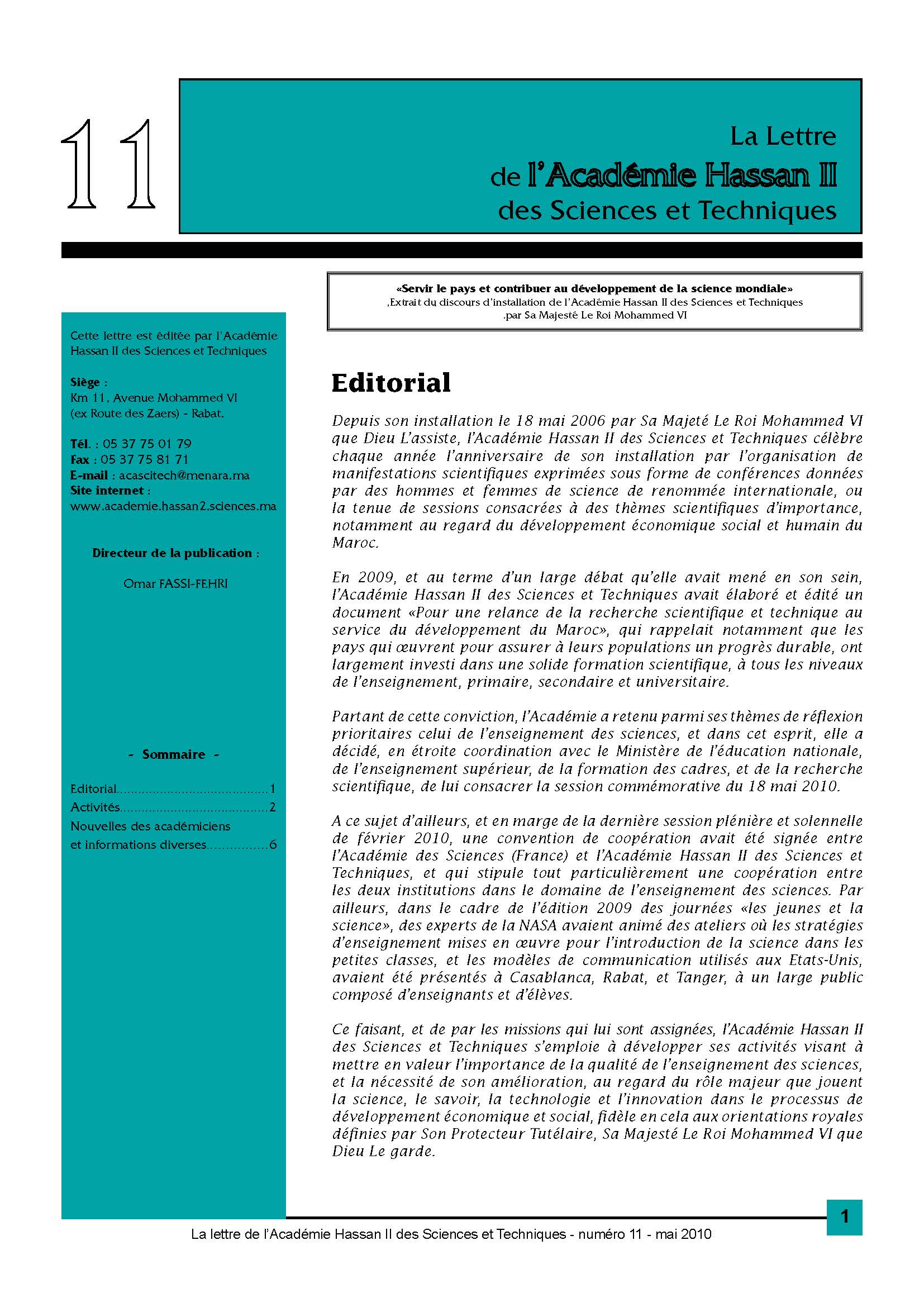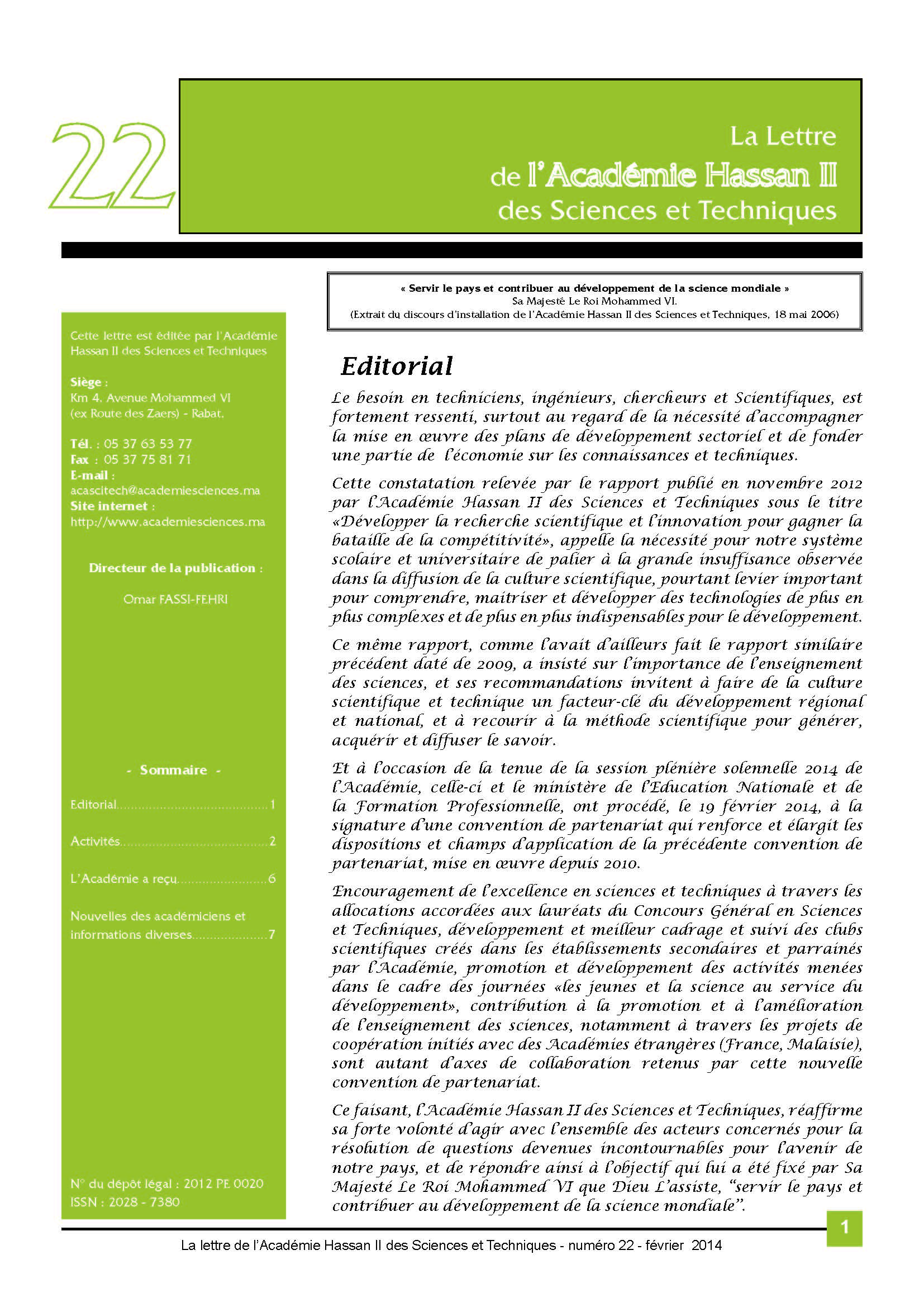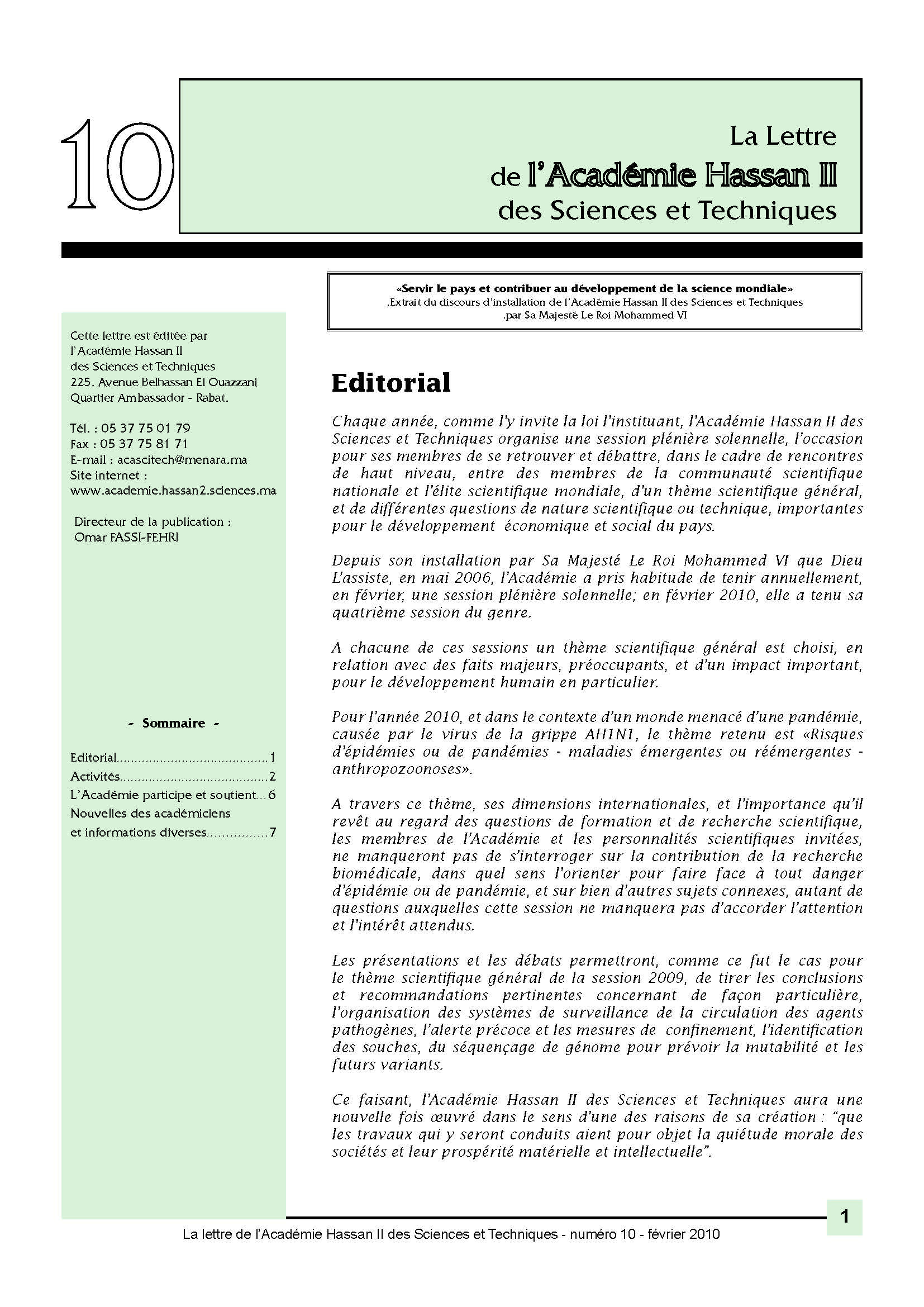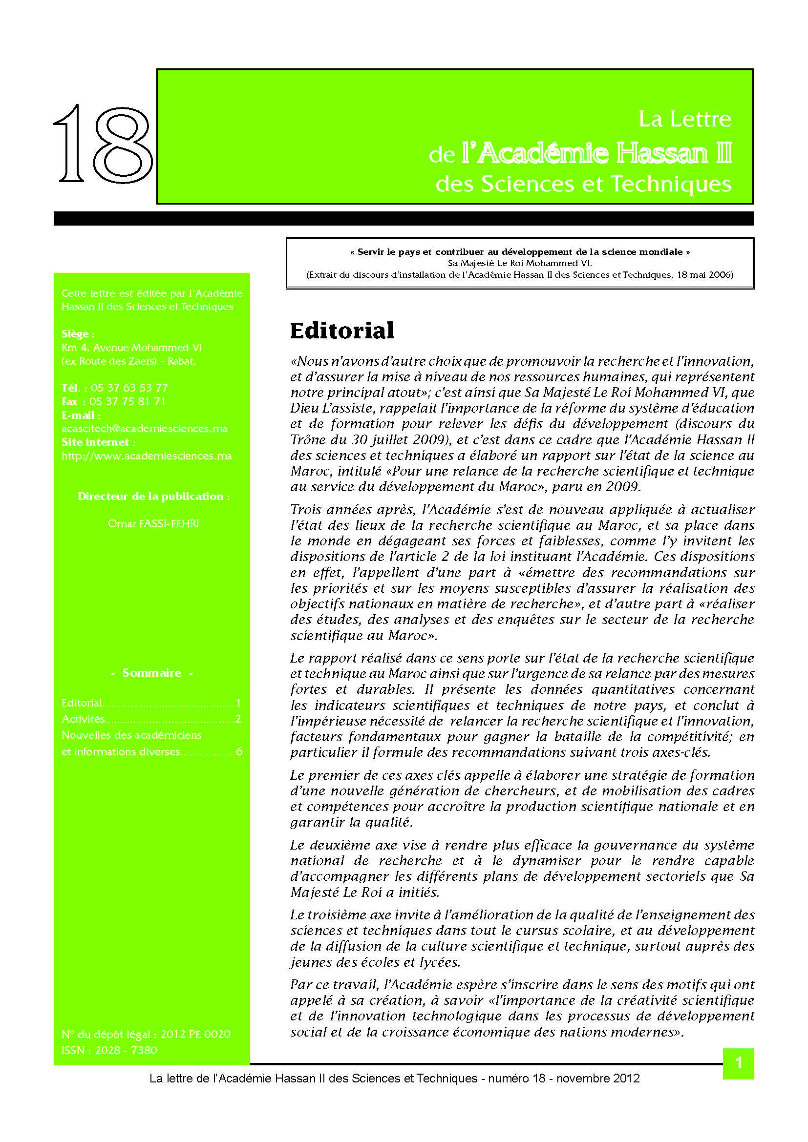 La lettre de l'Académie Hassan II des Sciences