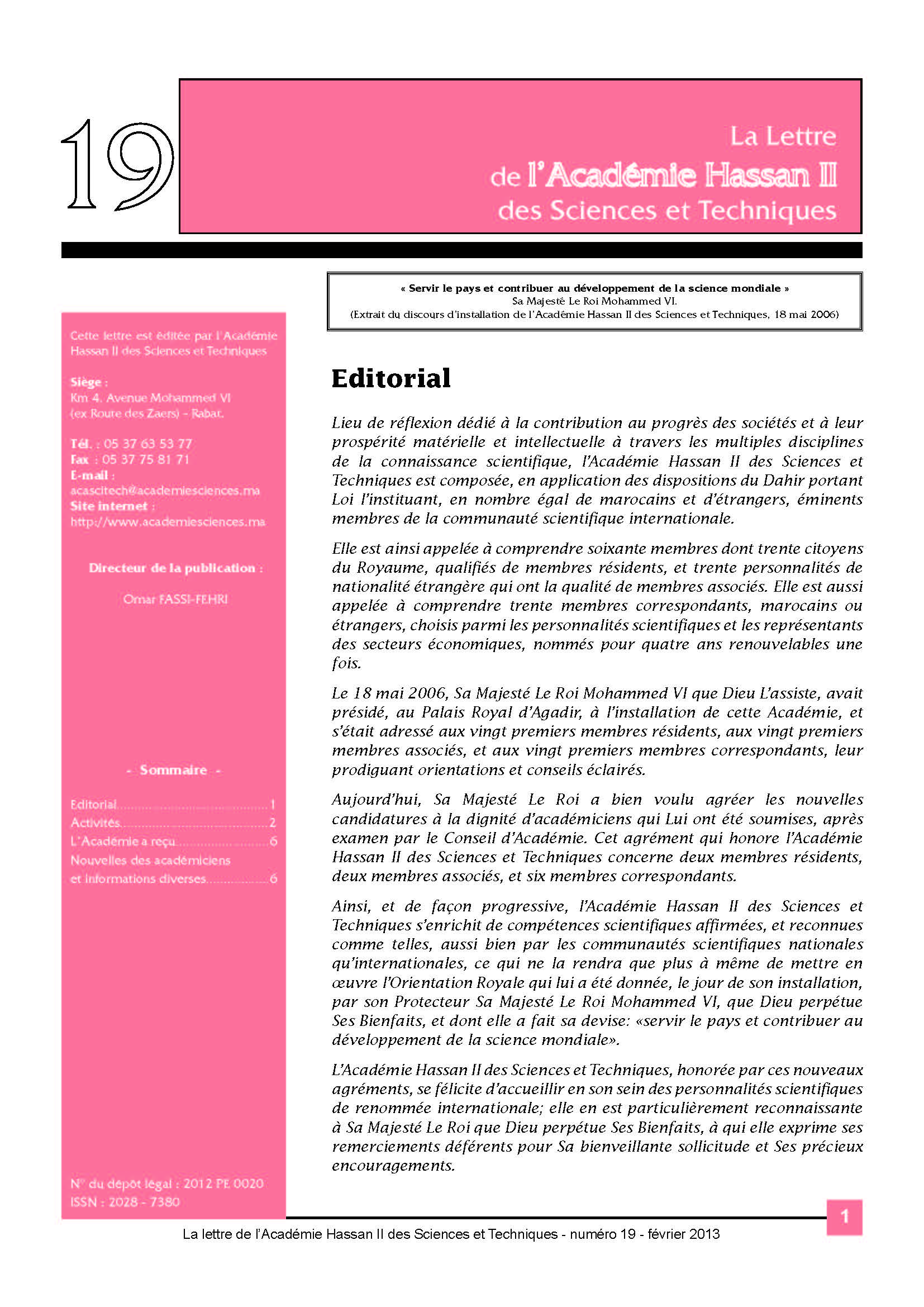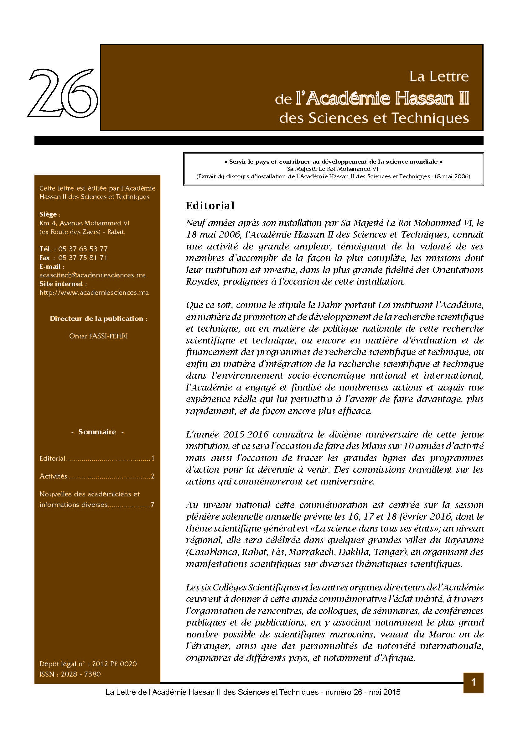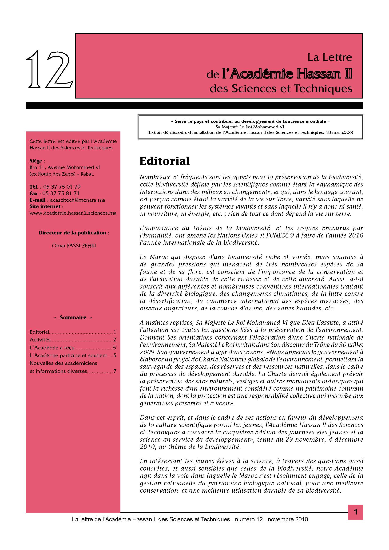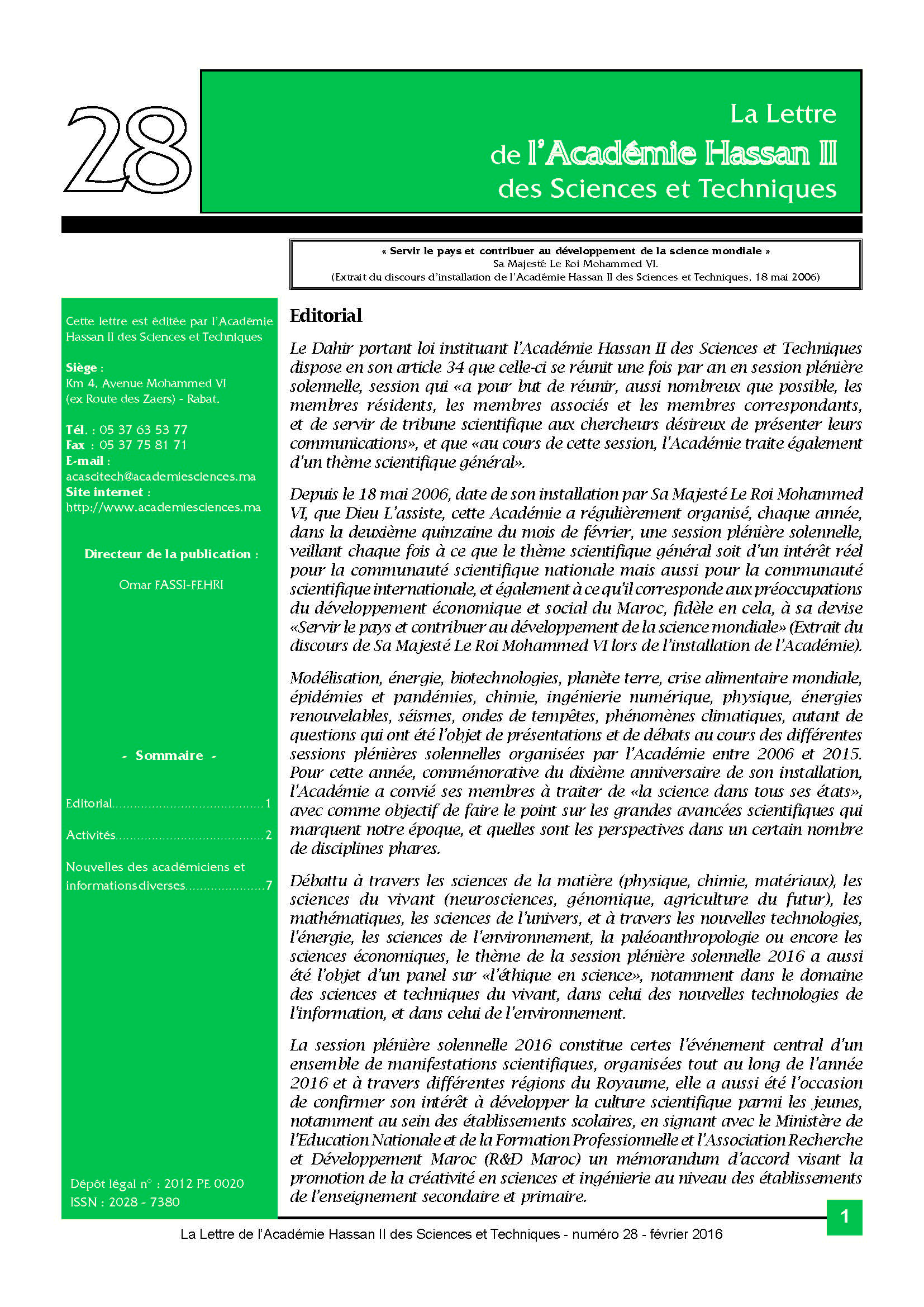 La lettre de l'Académie Hassan II des Sciences