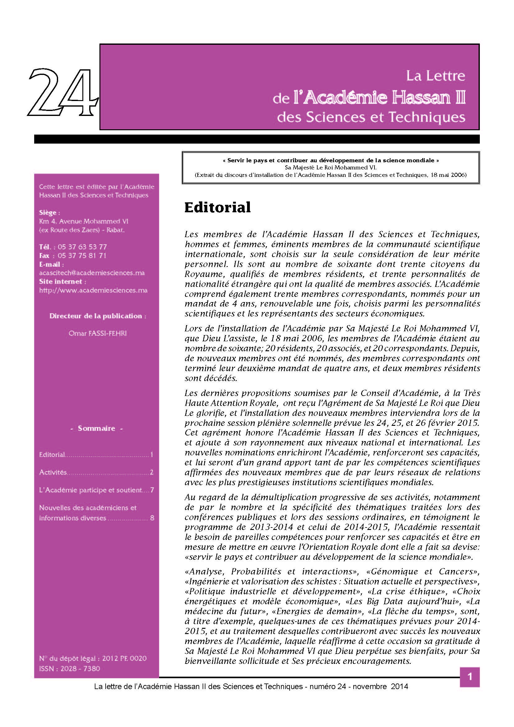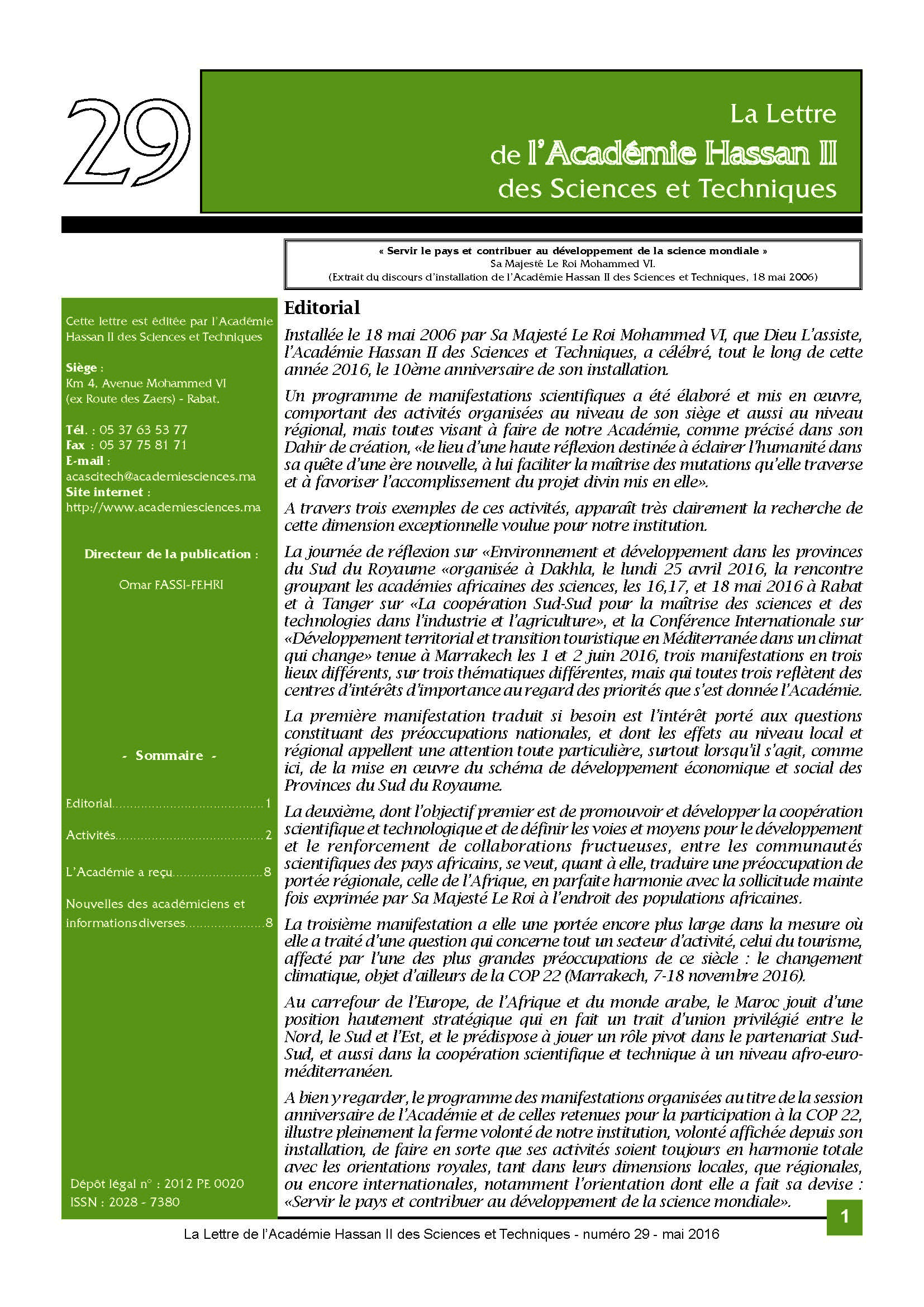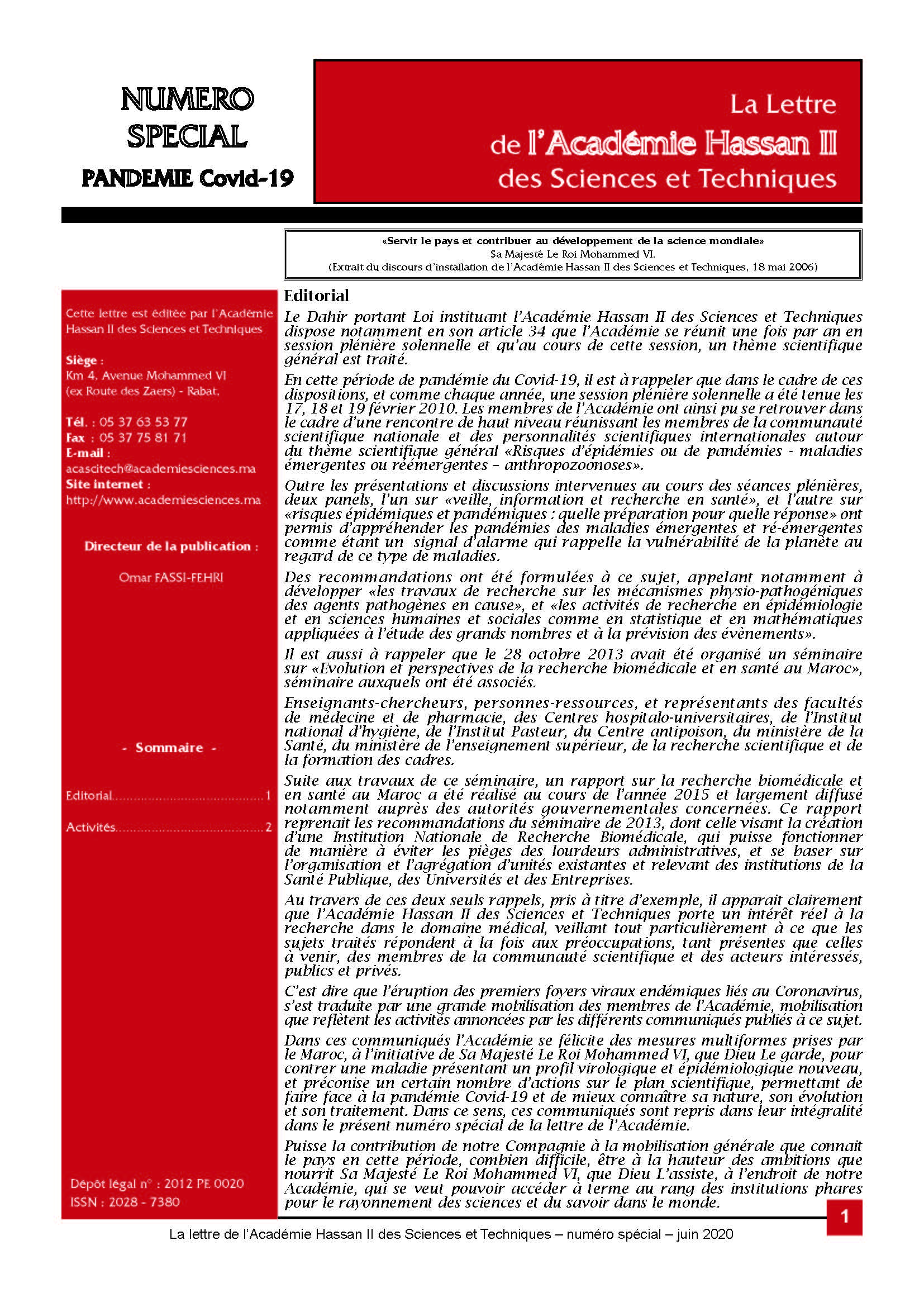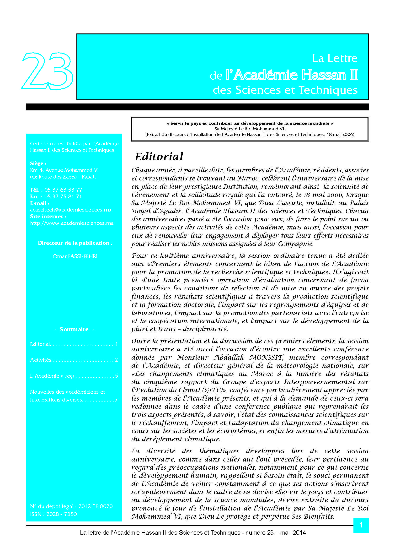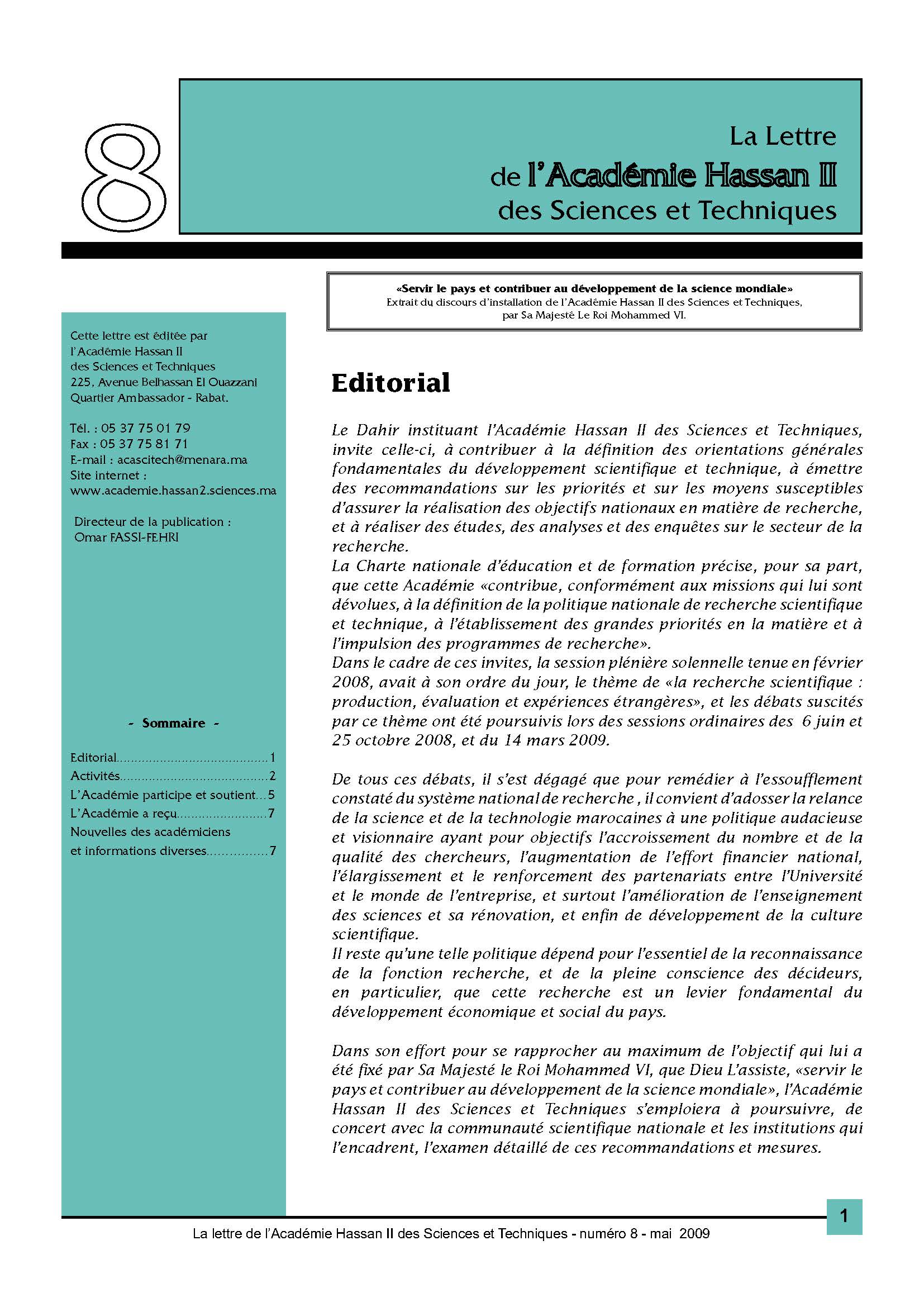 La lettre de l'Académie Hassan II des Sciences