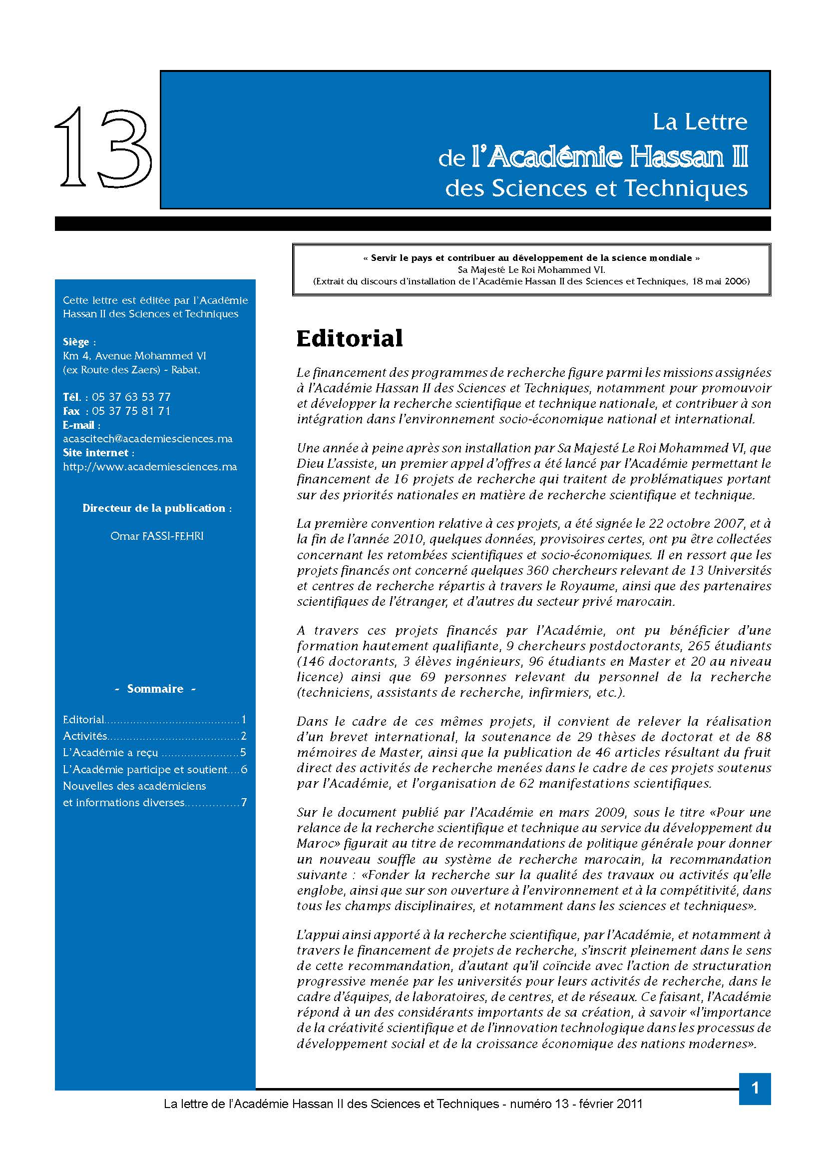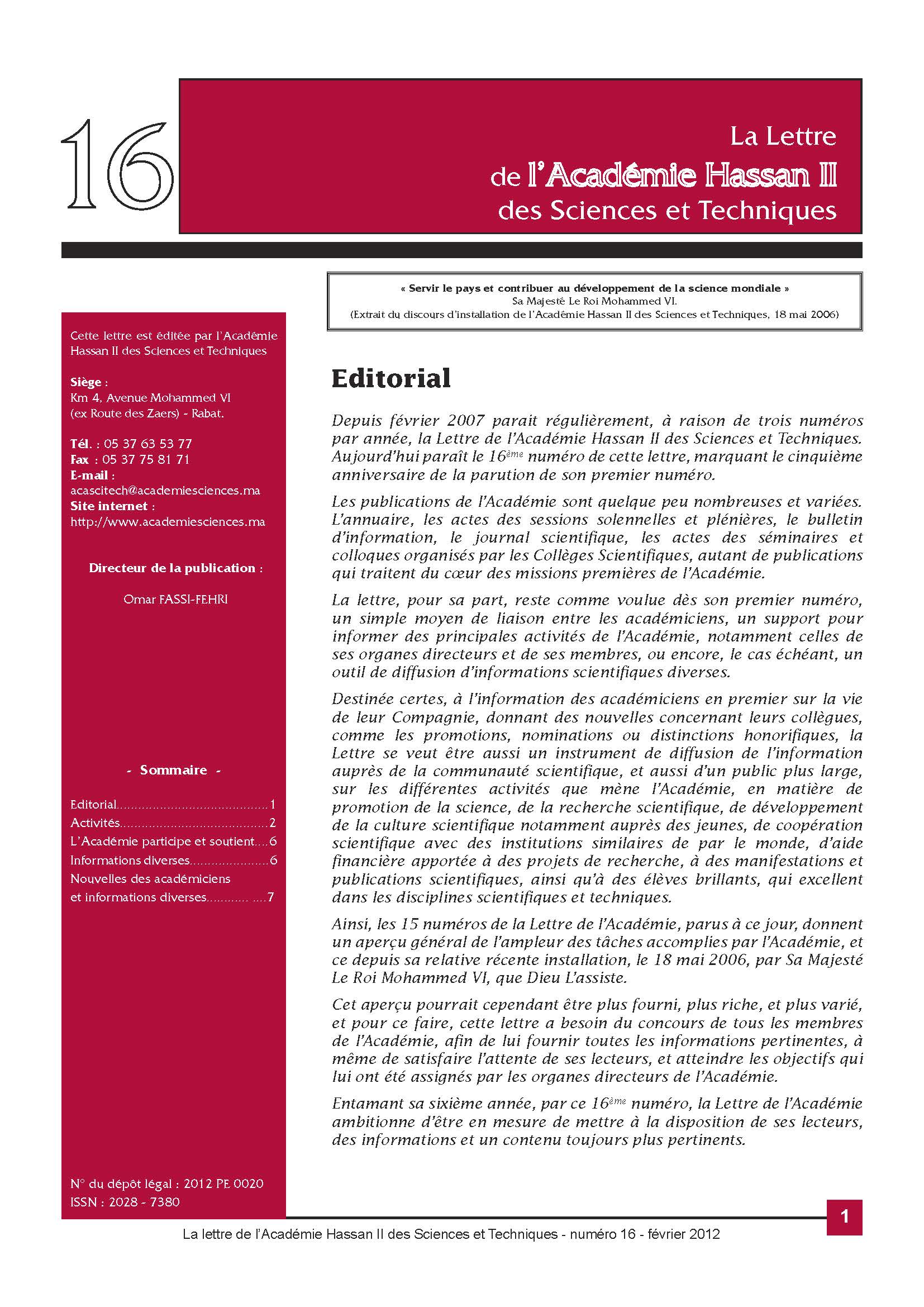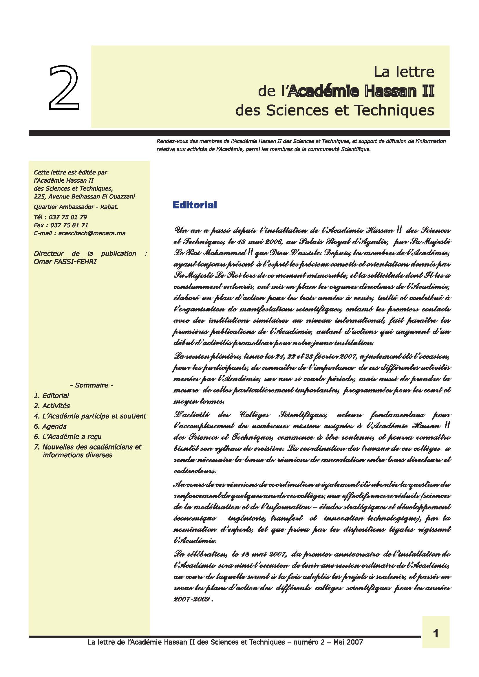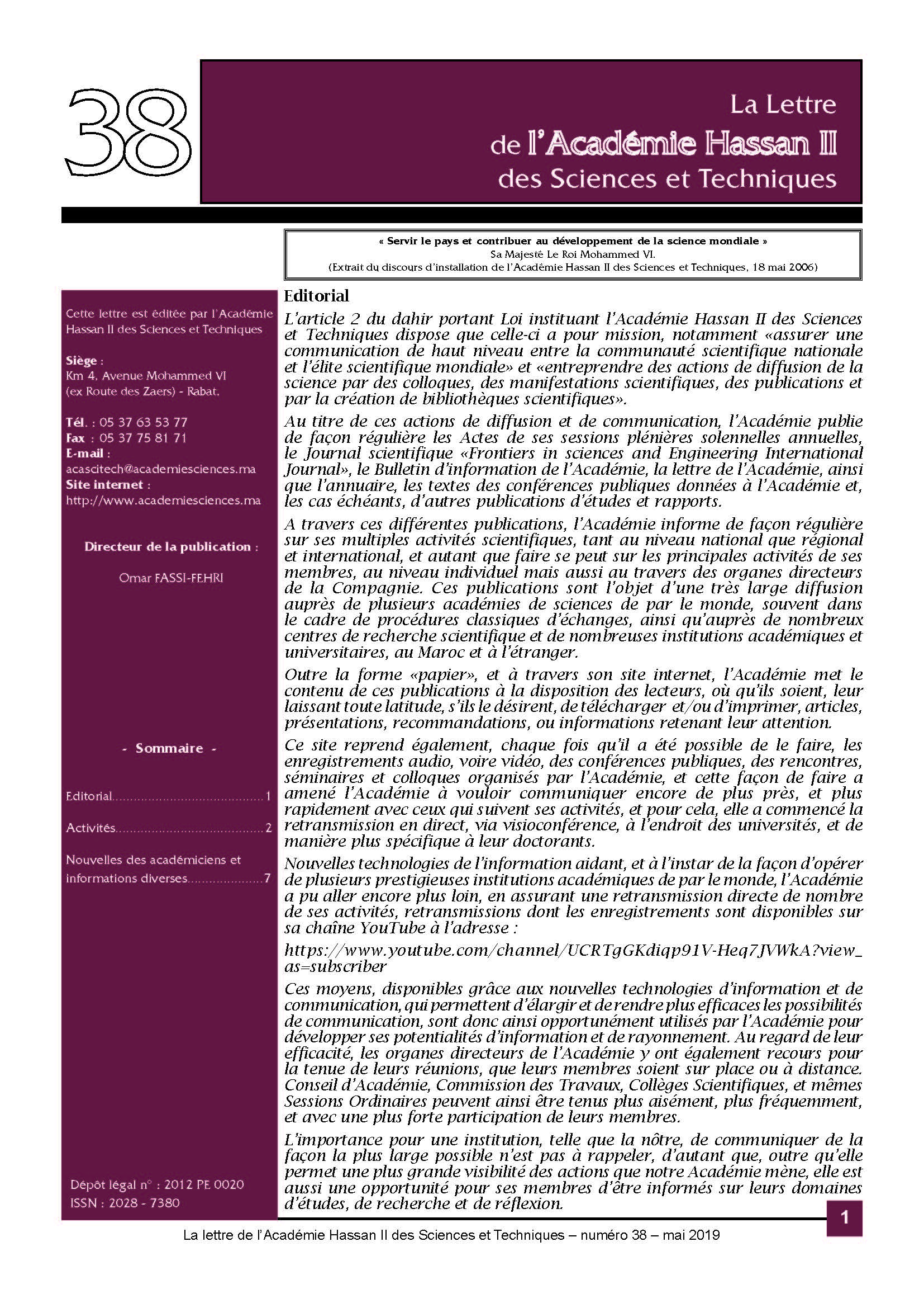 La lettre de l'Académie Hassan II des Sciences