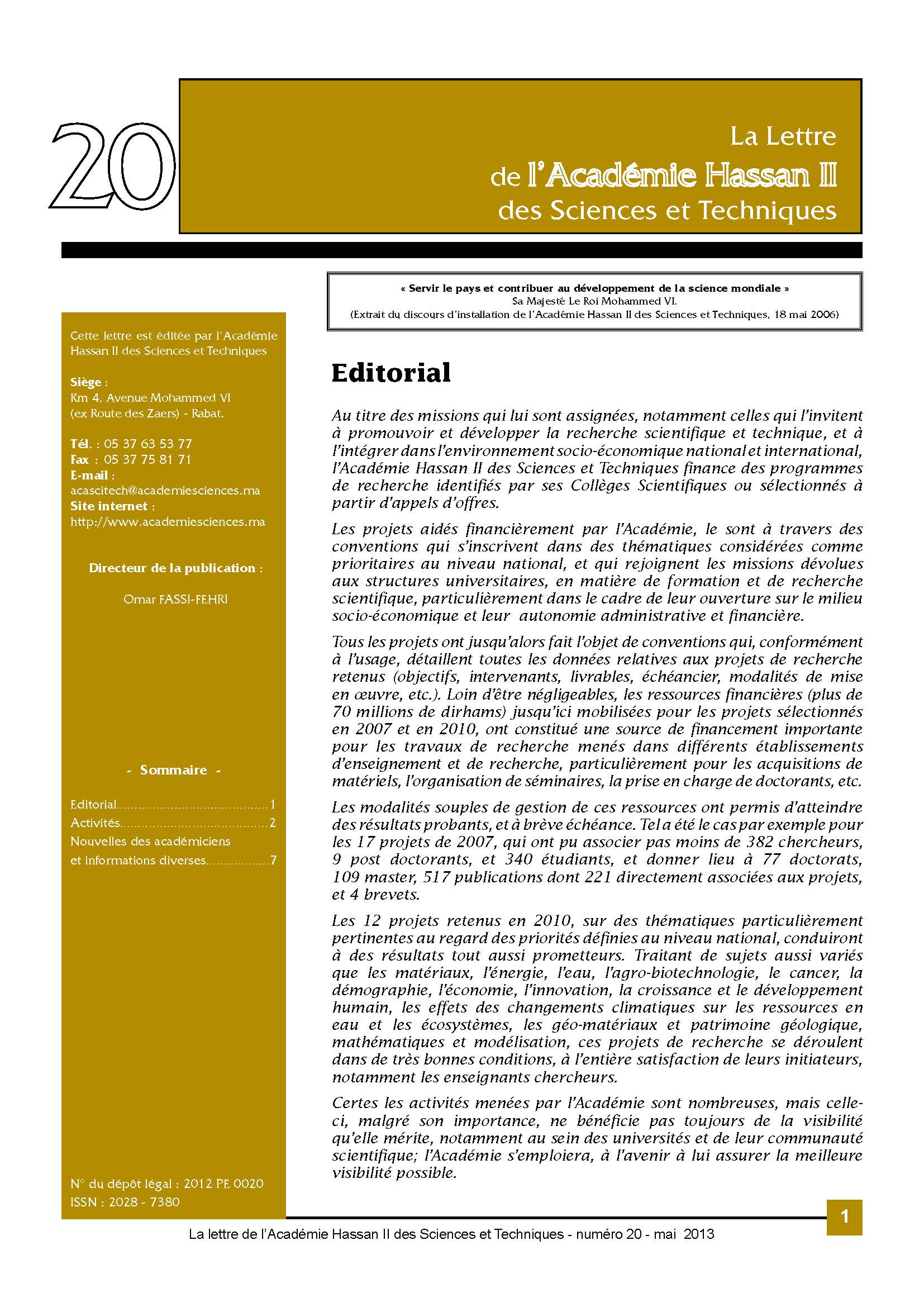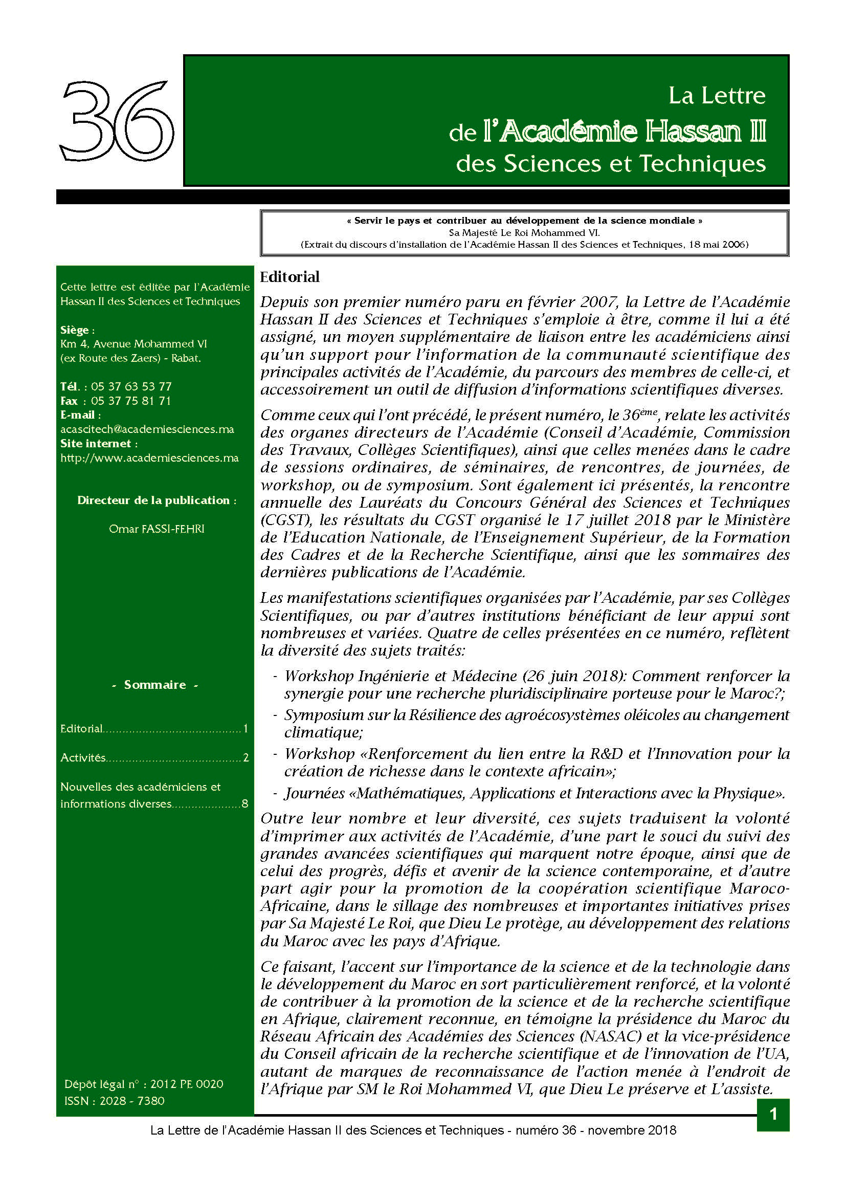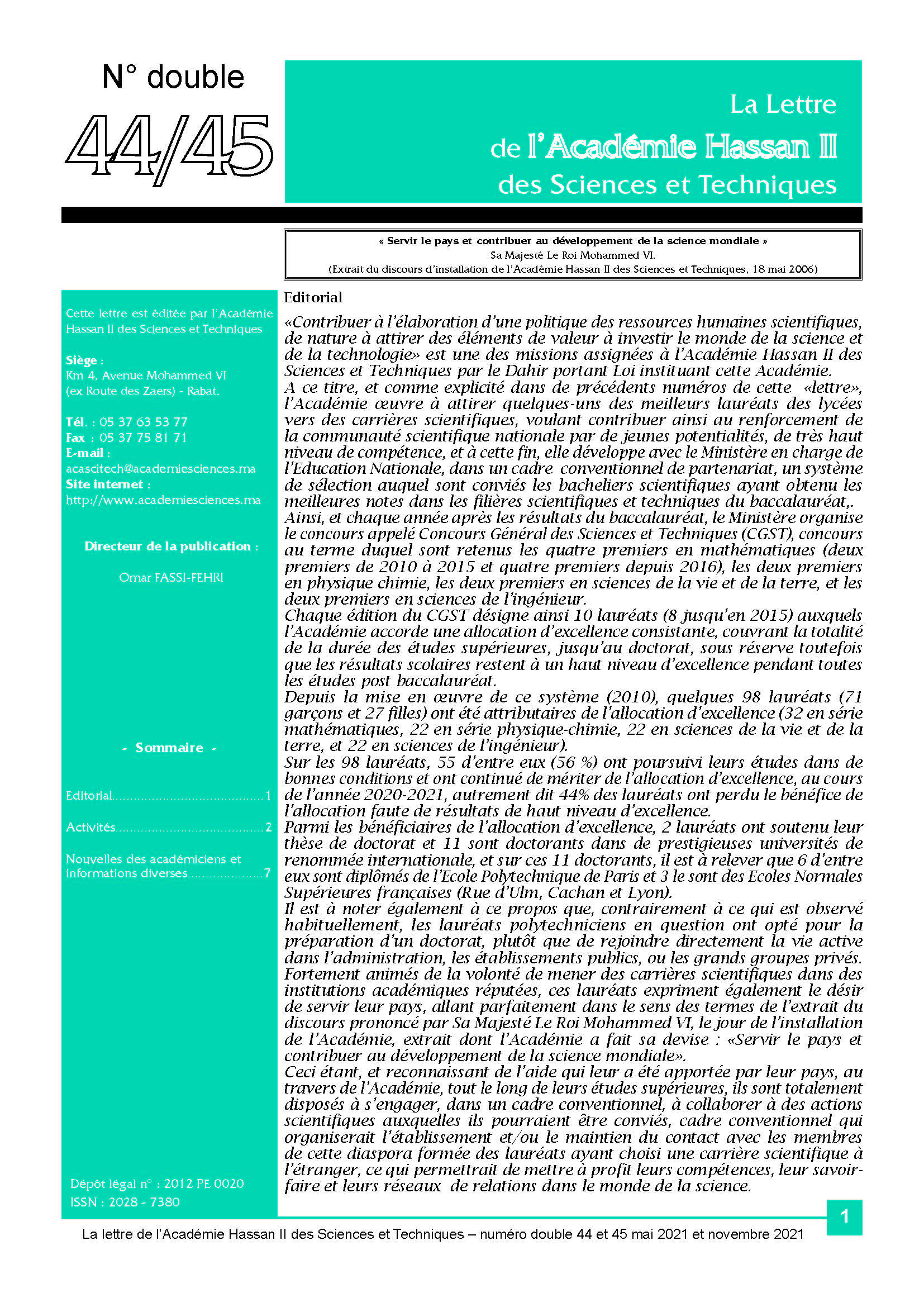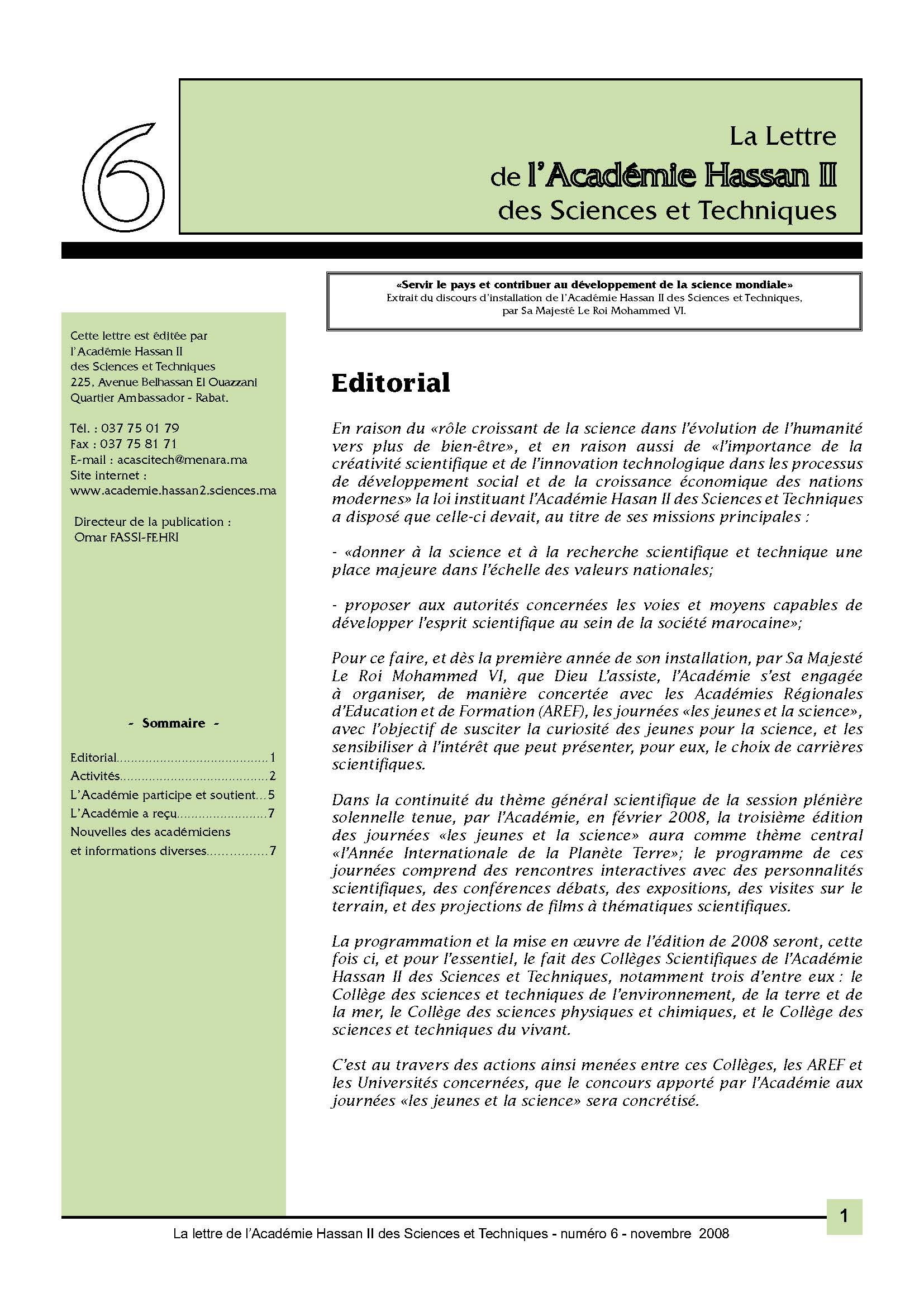 La lettre de l'Académie Hassan II des Sciences