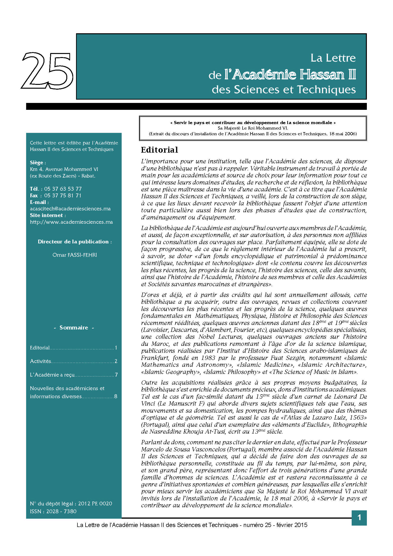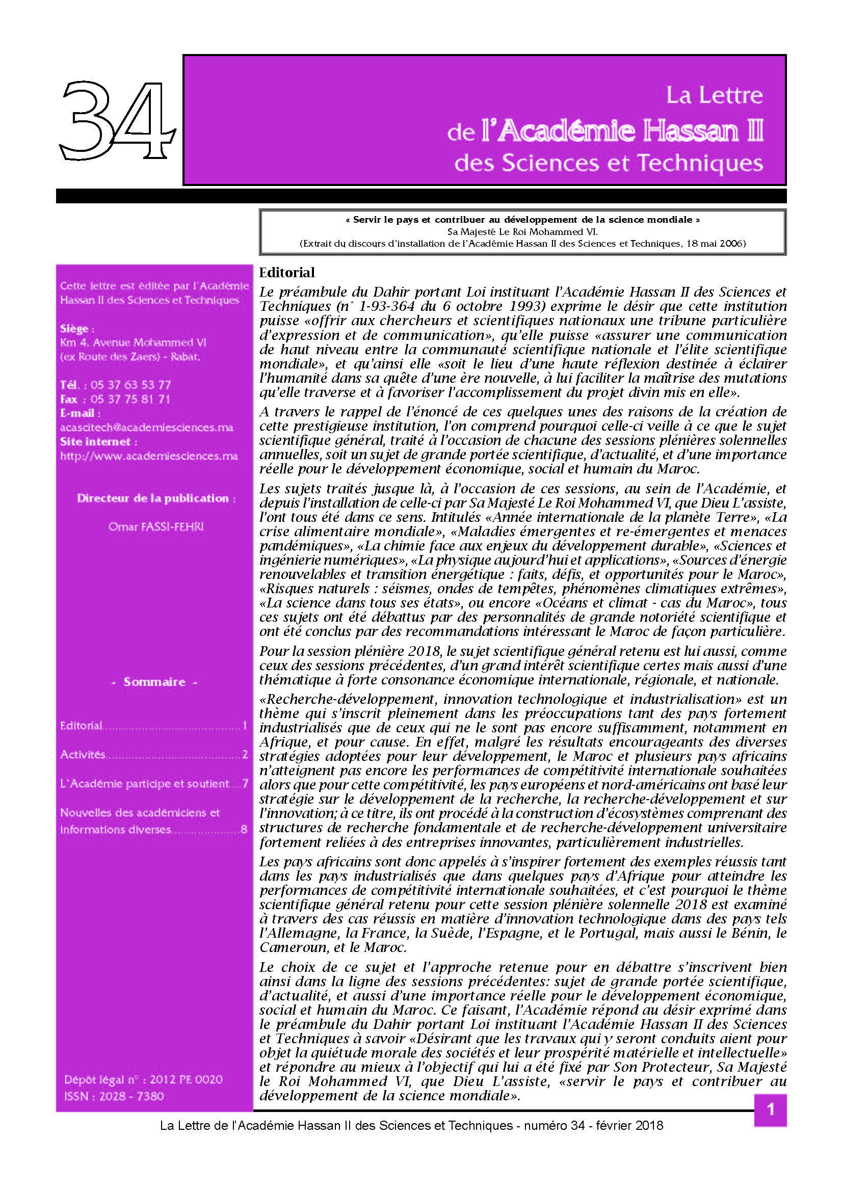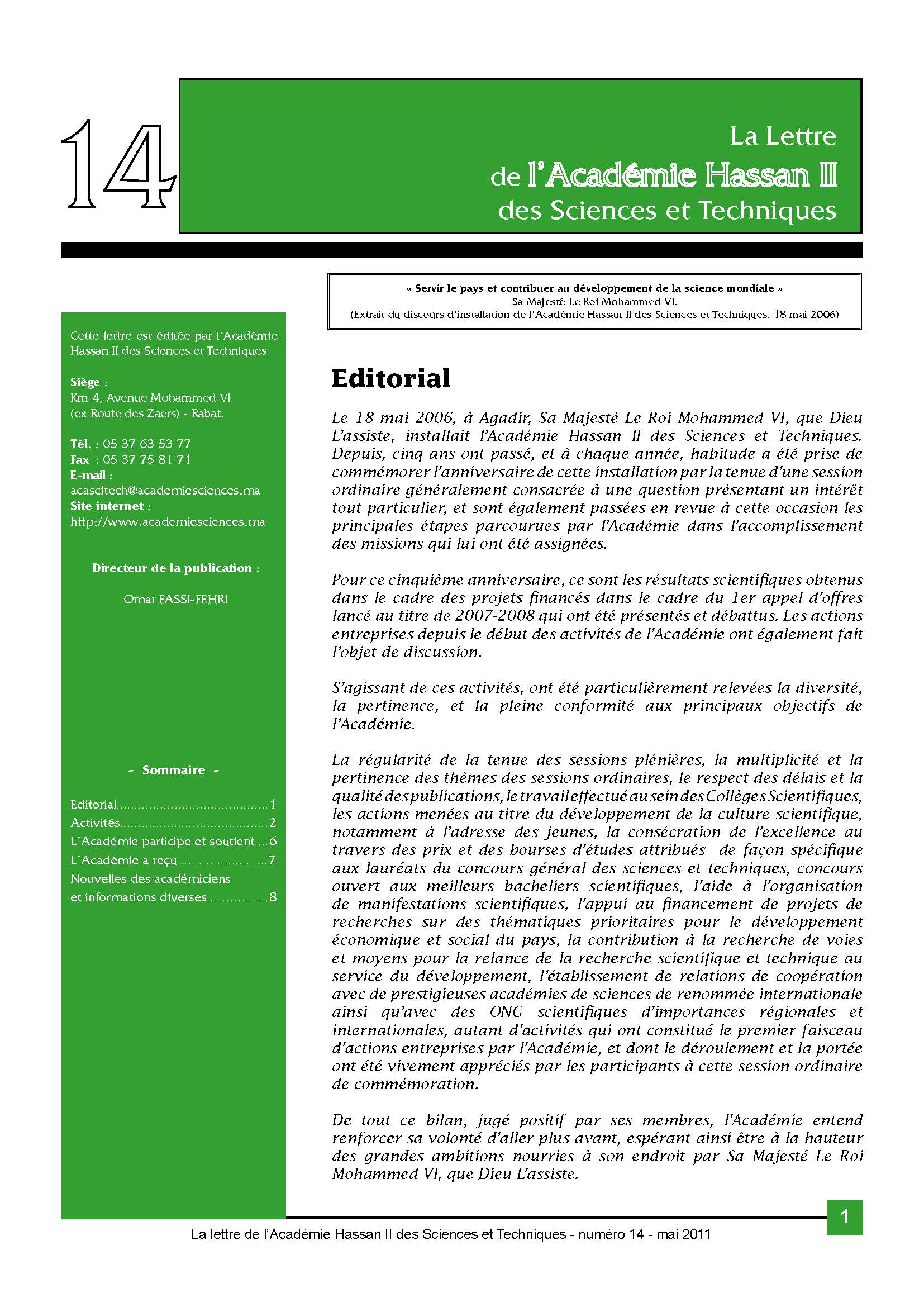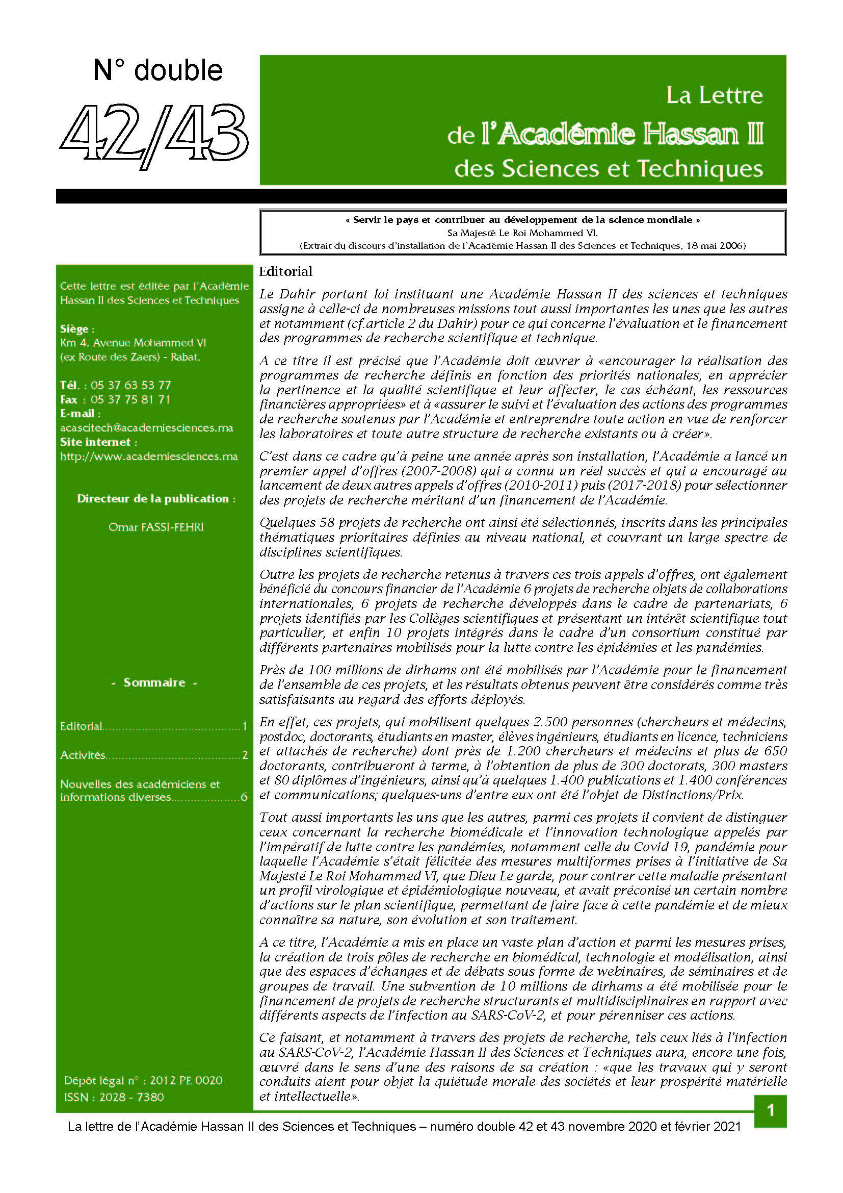 La lettre de l'Académie Hassan II des Sciences